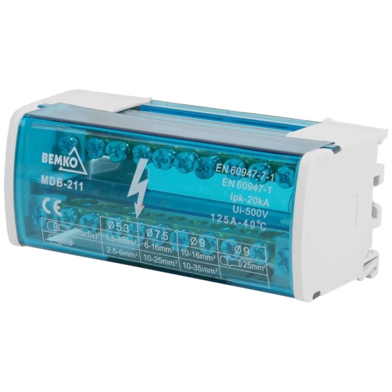 Blok rozdzielczy mostek łączeniowy 22 zaciski 2×11 służy do rozdziału energii elektrycznej. Urządzenie te pozwala na szybkie i proste rozdzielenie zasilania między różne obwody zasilające. Na listwach zaciskowych znajdują się otwory o różnej średnicy, dzięki czemu możliwe jest podłączenie grubszych i cieńszych żył - w taki sposób możliwe jest podłączenie przewodu zasilającego i rozdzielenie zasilania na przewody o mniejszych przekrojach. Wyposażony jest w osłonę, która chroni przed przypadkowym dotknięciem szyn zasilających. Obudowa została wykonana z wysokiej jakości poliwęglanu. Listwy zaciskowe wykonane są z mosiądzu, a montaż przewodów jest bardzo prosty. Blok rozdzielczy instaluje się w rozdzielnicach i montuje na szynie DIN/TH/THS 35mm za pomocą śrub.