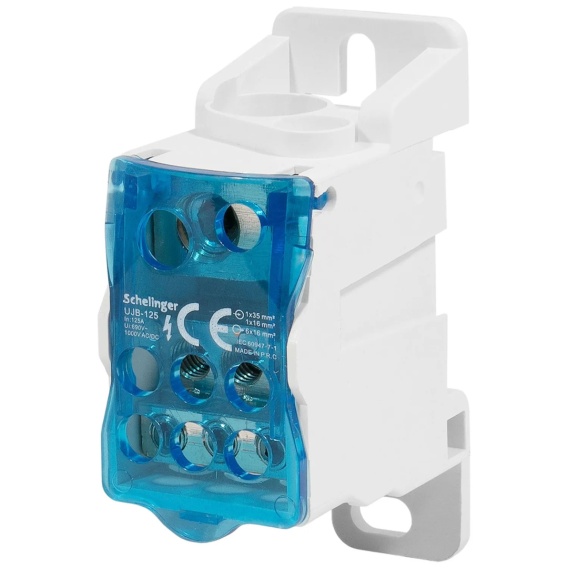 Blok rozdzielczy mostek łączeniowy 8 zacisków UJB-125 służy do rozdziału energii elektrycznej. Urządzenie te pozwala na szybkie i proste rozdzielenie zasilania między różne obwody zasilające. Na listwach zaciskowych znajdują się otwory o różnej średnicy, dzięki czemu możliwe jest podłączenie grubszych i cieńszych żył - w taki sposób możliwe jest podłączenie przewodu zasilającego i rozdzielenie zasilania na przewody o mniejszych przekrojach. Wyposażony jest w osłonę, która chroni przed przypadkowym dotknięciem szyn zasilających. Obudowa została wykonana z wysokiej jakości poliwęglanu. Listwy zaciskowe wykonane są z mosiądzu, a montaż przewodów jest bardzo prosty. Blok rozdzielczy instaluje się w rozdzielnicach i montuje na szynie DIN/TH 35mm.
