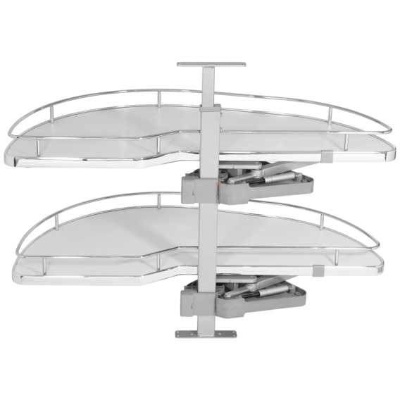 Cargo Magic Corner LAKE 900mm Nerka Lewy Biały Emuca to system funkcjonalnego zagospodarowania przestrzeni szafek narożnych dolnych. Wysuwające się niezależnie od siebie półki w znacznym stopniu poprawiają funkcjonalność oraz ułatwiają dostęp do produktów. Posiada dwie tace, które wysuwają się niezależnie od siebie. Maksymalne obciążenie jednej półki wynosi 20 kg. Tace nerki LAKE wykonane są z płyty melaminowanej, która charakteryzuje się dużą wytrzymałością i odpornością na wilgoć, uszkodzenia mechaniczne czy zużycie. Biały kolor tac i wykończenie ze stali chromowanej nadaje nerce eleganckiego wyglądu. Cargo Magic Corner LAKE posiada mechanizm dociągu, który gwarantuje bezgłośne wysunięcie półki oraz jej miękkie domknięcie. Nerka posiada regulowaną wysokość - w łatwy sposób dopasujesz ją do swojej szafki kuchennej.