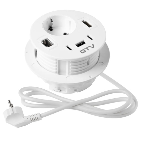 Gniazdo meblowe schuko RONDO 1xUSB A+2xUSB C, RJ45, HDMI 1,4 - białe