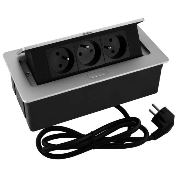 Gniazdo wpuszczane chowane w blat SOFTBOX Aluminium GTV