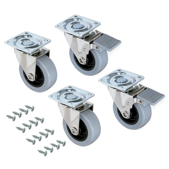 Kółko meblowe obrotowe SLIP 2 50mm szare zestaw Emuca idealnie nadają się do wszystkich rodzajów mebli domowych i biurowych.Każdy zestaw składa się z 2 kółek z hamulcem, 2 kółek bez hamulca. Do kółek z płytką dołączone są śruby niezbędne do ich montażu.