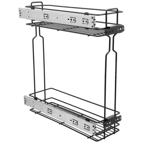 Kosz Cargo Mini 20 2 Poziomy bocznego montażu CICHY DOMYK Grafit przeznaczony jest do szafek kuchennych o rozmiarze 200mm. Kosz ten wyposażony jest w prowadnice pełnego wysuwu z systemem cichego domyku. System pełnego wysuwu pozwala na łatwy dostęp do zawartości szafki, a samodociąg z hamulcem gwarantuje ciche domykanie. Cargo posiada dwa mocowania do frontu meblowego wraz śrubkami i wkrętami. Łatwy montaż i demontaż kosza z części prowadnic.