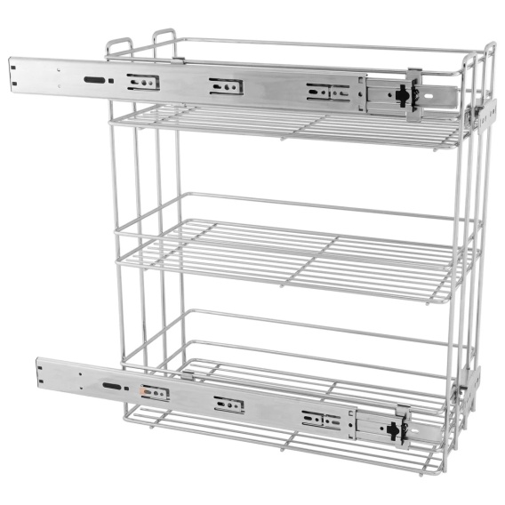 Kosz Cargo Mini 30 3 Poziomy bocznego montażu CICHY DOMYK Ocynk przeznaczony jest do szafek kuchennych o rozmiarze 300mm. Kosz ten wyposażony jest w prowadnice pełnego wysuwu z systemem cichego domyku. System pełnego wysuwu pozwala na łatwy dostęp do zawartości szafki, a samodociąg z hamulcem gwarantuje ciche domykanie. Cargo posiada dwa mocowania do frontu meblowego wraz śrubkami i wkrętami. Łatwy montaż i demontaż kosza z części prowadnic. Kosz Cargo Mini bocznego montażu CICHY DOMYK Ocynk jest koszem uniwersalnym i posiada możliwość zamontowania prowadnic zarówno po lewej jak i prawej stronie kosza.