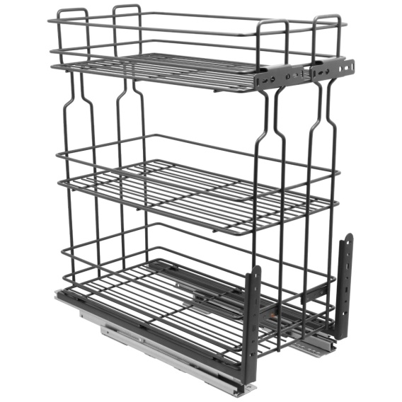 Kosz Cargo Mini 30 3 Poziomy dolnego montażu CICHY DOMYK przeznaczony jest do szafek kuchennych o rozmiarze 300mm. Kosz ten wyposażony jest w prowadnice pełnego wysuwu z systemem cichego domyku. System pełnego wysuwu pozwala na łatwy dostęp do zawartości szafki, a samodociąg z hamulcem gwarantuje ciche domykanie. Cargo Mini posiada dwa mocowania do frontu meblowego wraz śrubkami i wkrętami. Łatwy montaż i demontaż kosza z części prowadnic.