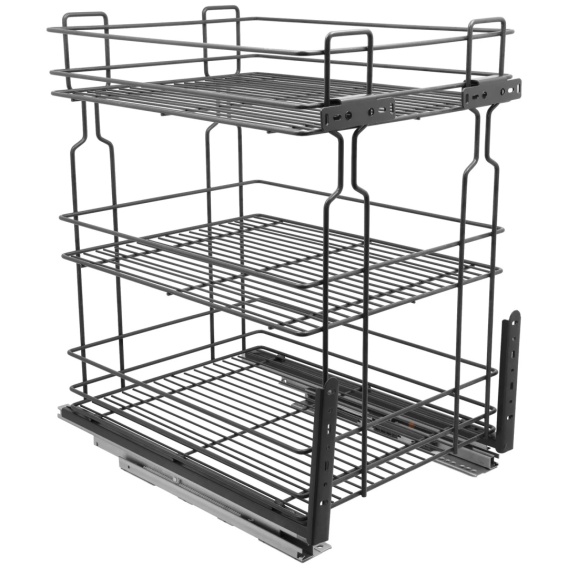 Kosz Cargo Mini 40 3 Poziomy dolnego montażu CICHY DOMYK przeznaczony jest do szafek kuchennych o rozmiarze 400mm. Kosz ten wyposażony jest w prowadnice pełnego wysuwu z systemem cichego domyku. System pełnego wysuwu pozwala na łatwy dostęp do zawartości szafki, a samodociąg z hamulcem gwarantuje ciche domykanie. Cargo Mini posiada dwa mocowania do frontu meblowego wraz śrubkami i wkrętami. Łatwy montaż i demontaż kosza z części prowadnic.