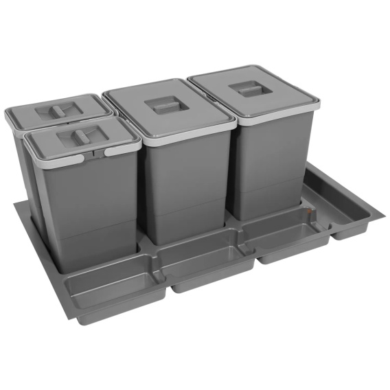 Kosz Segregator na śmieci Sortownik 90 2x18L 2x8L FUTURE został stworzony specjalnie do wykorzystania w szufladach o szerokości 90 cm. Ten innowacyjny produkt składa się z wkładu, który można dostosować poprzez przycięcie, dwóch pojemników o pojemności 18 litrów oraz dwóch pojemników o pojemności 8 litrów. Dzięki temu doskonałemu rozwiązaniu, segregowanie odpadów staje się łatwe i przyjemne. Dzięki odpowiedniemu dopasowaniu do szerokości szuflady, sortownik idealnie wpasowuje się w kuchenne wnętrze. Można go łatwo zamontować, zapewniając wygodny i optymalny dostęp do pojemników na śmieci. Ten produkt nie tylko pomaga utrzymać czystość w kuchni, ale również wpływa na dbanie o środowisko.
