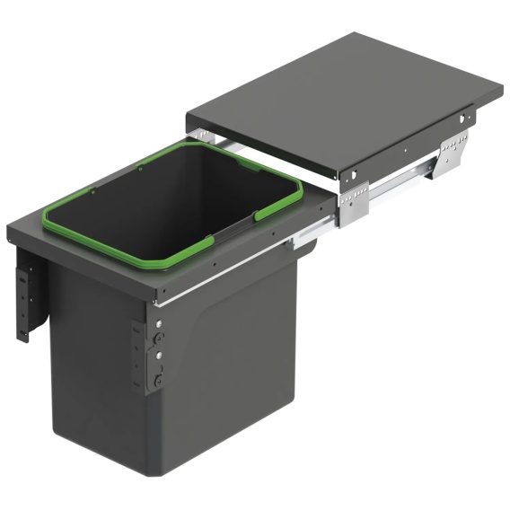 Kosz przeznaczony jest do montażu w modułach 450 mm o minimalnych wymiarach wewnętrznych 470 mm głębokości i 453 mm wysokości. Kompatybilny z płytami 16, 18 i 19 mm. Kosz montuje się do modułu bocznie. Zestaw wykonany jest ze stali i tworzywa sztucznego w wykończeniu antracytowo-szarym.