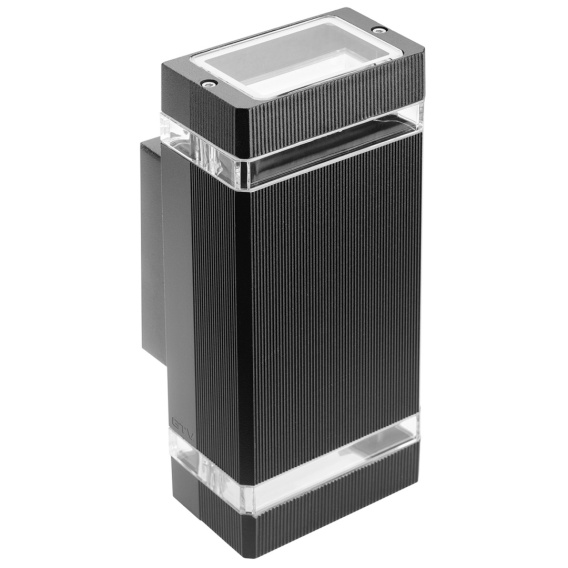 Lampa elewacyjna dwukierunkowa NESSA czarna to produkt, który idealnie sprawdza się jako oświetlenie balkonu, altany, podjazdów czy miejsca przy drzwiach wejściowych itp. Oprawy Nessa wykonane zostały ze stopu aluminium i szkła hartowanego, dzięki czemu posiadają wysoką trwałość. Stopień szczelności IP 54 gwarantuje wysoki poziom wytrzymałości na warunki atmosferyczne. Lampę można używać w temperaturze od -20° do +35°C. Oprawa posiada wbudowane dwa gniazda GU10, co pozwala na dostosowanie temperatury światła i jasności do własnych preferencji. Maksymalna moc źródeł światła jakie można zastosować to 2x50 W. Oprawa emituje światło w dwóch kierunkach góra-dół.