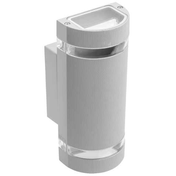 Lampa elewacyjna dwukierunkowa SILVA szara to produkt, który idealnie sprawdza się jako oświetlenie balkonu, altany, podjazdów czy miejsca przy drzwiach wejściowych itp. Oprawy Silva wykonane zostały ze stopu aluminium i szkła hartowanego, dzięki czemu posiadają wysoką trwałość. Stopień szczelności IP 54 gwarantuje wysoki poziom wytrzymałości na warunki atmosferyczne. Lampę można używać w temperaturze od -20° do +35°C. Oprawa posiada wbudowane dwa gniazda GU10, co pozwala na dostosowanie temperatury światła i jasności do własnych preferencji. Maksymalna moc źródeł światła jakie można zastosować to 2x50 W. Oprawa emituje światło w dwóch kierunkach góra-dół.