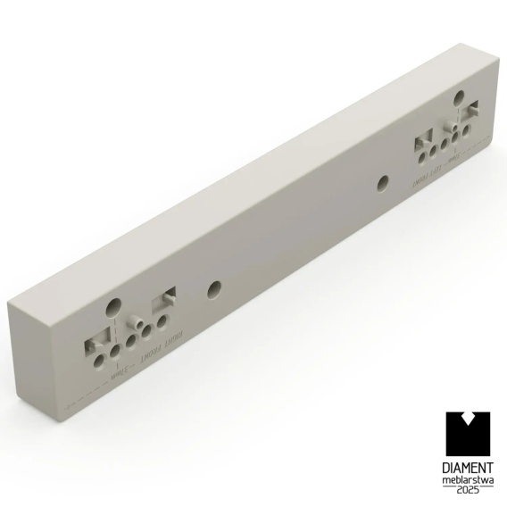 Dystans do ramy HACK Kaszmir przeznaczony jest do montażu w szafach z drzwiami uchylnymi lub przesuwnymi wraz z ramą wysuwną HACK. Zadaniem dystansu jest pozostawienie przestrzeni 25 mm pomiędzy ramą a bokiem korpusu, aby drzwi nie kolidowały z ramą. Doskonale pasuje do wnętrza w kolorze kaszmir.