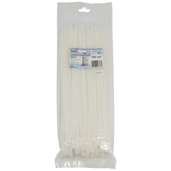 Opaski zaciskowe trytytki 4.8x300mm Białe 100szt BEMKO