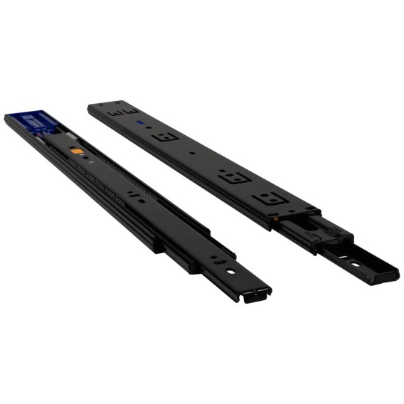Prowadnica kulkowa VERSALITE H-45 Cichy Domyk posiada możliwość demontażu części prowadnika oraz mechanizm zabezpieczający przed wypadnięciem szuflady. Zaleca się montaż, w którym szerokość szuflady nie przekracza długości nominalnej prowadnicy. Wysokiej jakości prowadnica w niskiej cenie. Komplet dotyczy prowadnicy lewej i prawej.