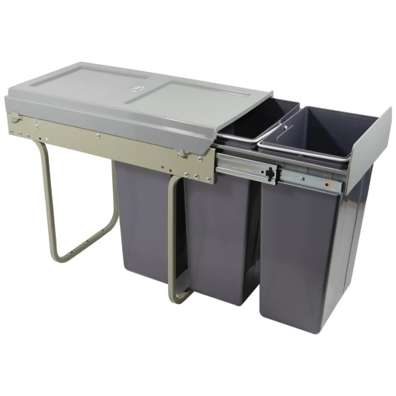 Segregator na śmieci podwójny 300 Cichy Domyk CLG-604 AMIX idealnie pasuje do szafek kuchennych. Produkt wyposażony jest w prowadnice pełnego wysuwu z systemem cichego domyku. System pełnego wysuwu pozwala ułatwia dostęp do pojemników, a samodociąg z hamulcem gwarantuje ciche domykanie. W skład produktu wchodzi stelaż oraz trzy pojemniki: 3×10 L.
