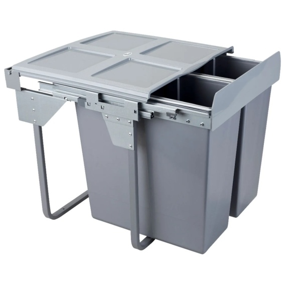 Segregator na śmieci podwójny 600 Cichy Domyk CLG-609-2 AMIX idealnie pasuje do szafek kuchennych. Produkt wyposażony jest w prowadnice pełnego wysuwu z systemem cichego domyku. System pełnego wysuwu pozwala ułatwia dostęp do pojemników, a samodociąg z hamulcem gwarantuje ciche domykanie. W skład produktu wchodzi stelaż oraz dwa pojemniki: 2×34 L.