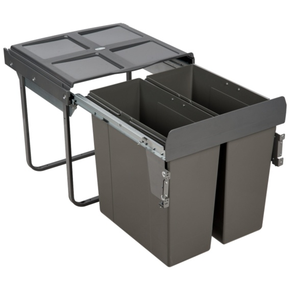 Segregator na śmieci podwójny 600 Cichy Domyk CLG-609N-2 AMIX idealnie pasuje do szafek kuchennych. Produkt wyposażony jest w prowadnice pełnego wysuwu z systemem cichego domyku. System pełnego wysuwu pozwala ułatwia dostęp do pojemników, a samodociąg z hamulcem gwarantuje ciche domykanie. W skład produktu wchodzi stelaż oraz dwa pojemniki: 2×34 L.