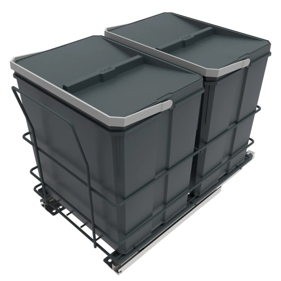 Kosz Segregator na śmieci podwójny idealnie pasuje do szafek kuchennych. Produkt wyposażony jest w prowadnice pełnego wysuwu z systemem cichego domyku. System pełnego wysuwu pozwala na łatwy dostęp do zawartości szuflady, a samodociąg z hamulcem gwarantuje ciche domykanie.