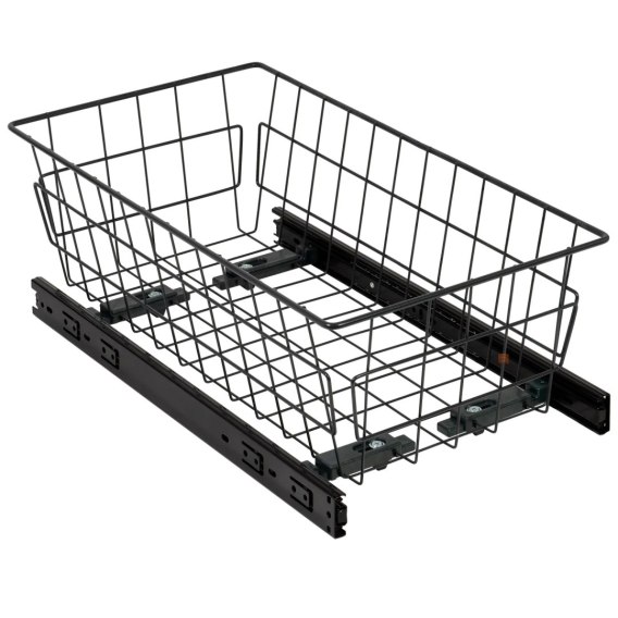 Szuflada kosz MD 30 H-150 PEŁNY WYSUW BL Grafit przeznaczona jest do szaf i garderoby do szuflad o rozmiarze nie większym niż 300mm. Wykonana jest z wytrzymałego drutu wykończonego w grafitowym kolorze. Szuflada MD sprzedawana jest w zestawie z prowadnicami kulkowymi H-35 z pełnym wysuwem. System pełnego wysuwu zapewnia łatwy i nieograniczony dostęp do zawartości szuflady. Dodatkową zaletą jest łatwy montaż i demontaż szuflady z części prowadnic.