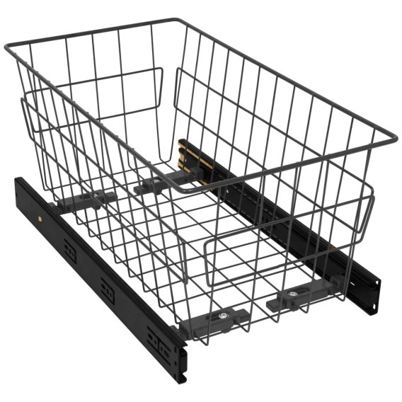 Szuflada kosz MD 30 H-200 Grafit CICHY DOMYK BL przeznaczona jest do szaf i garderoby do szuflad o rozmiarze nie większym niż 300mm. Wykonana jest z wytrzymałego drutu wykończonego w grafitowym kolorze. Szuflada MD sprzedawana jest w zestawie z czarnymi prowadnicami kulkowymi H-45 z pełnym wysuwem i cichym domykiem. System pełnego wysuwu zapewnia łatwy i nieograniczony dostęp do zawartości szuflady. Samodociąg gwarantuje ciche domykanie. Dodatkową zaletą jest łatwy montaż i demontaż szuflady z części prowadnic.