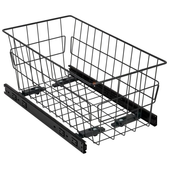 Szuflada kosz MD 40 H-200 PEŁNY WYSUW BL Grafit przeznaczona jest do szaf i garderoby do szuflad o rozmiarze nie większym niż 400mm. Wykonana jest z wytrzymałego drutu wykończonego w grafitowym kolorze. Szuflada MD sprzedawana jest w zestawie z prowadnicami kulkowymi H-35 z pełnym wysuwem. System pełnego wysuwu zapewnia łatwy i nieograniczony dostęp do zawartości szuflady. Dodatkową zaletą jest łatwy montaż i demontaż szuflady z części prowadnic.