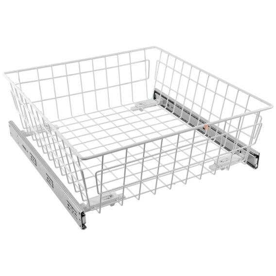 Regulowana szuflada do szafy przesuwnej lub garderoby. Wykonana została z trwałej stali ocynkowanej w kolorze białym. Pięknie się prezentuje, jest praktyczna i funkcjonalna. Pomieści sporą ilość bielizny lub odzieży. Jej wysokość wynosi dokładnie 150 milimetrów. Produkt na prowadnicach z samodociągiem gwarantuje ciche i delikatne domykanie.