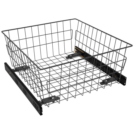 Szuflada kosz MD 50 H-200 Grafit CICHY DOMYK BL przeznaczona jest do szaf i garderoby do szuflad o rozmiarze nie większym niż 500mm. Wykonana jest z wytrzymałego drutu wykończonego w grafitowym kolorze. Szuflada MD sprzedawana jest w zestawie z czarnymi prowadnicami kulkowymi H-45 z pełnym wysuwem i cichym domykiem. System pełnego wysuwu zapewnia łatwy i nieograniczony dostęp do zawartości szuflady. Samodociąg gwarantuje ciche domykanie. Dodatkową zaletą jest łatwy montaż i demontaż szuflady z części prowadnic.
