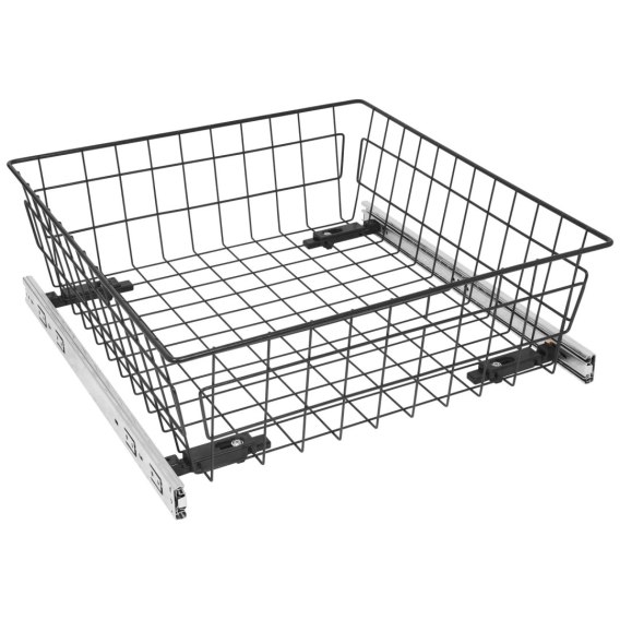Szuflada kosz MD 60 H-150 CICHY DOMYK Grafit przeznaczona jest do szaf i garderoby do szuflad o rozmiarze nie większym niż 600mm. Wykonana jest z wytrzymałego drutu wykończonego w grafitowym kolorze. Szuflada MD sprzedawana jest w zestawie z prowadnicami kulkowymi H-45 z pełnym wysuwem i cichym domykiem. System pełnego wysuwu zapewnia łatwy i nieograniczony dostęp do zawartości szuflady. Samodociąg gwarantuje ciche domykanie. Dodatkową zaletą jest łatwy montaż i demontaż szuflady z części prowadnic.