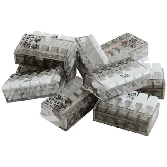 Szybkozłączki na drut 5x4mm P055 25szt służy do łączenia przewodów. Można ją stosować między innymi w szafkach rozdzielczych czy puszkach elektroinstalacyjnych. Dzięki niewielkim rozmiarom można ją stosować na małej przestrzeni. Model wyposażony jest w dźwignię otwierającą zacisk co wpływa na duży komfort użytkowania oraz gwarantuje pewny ścisk przewodu. Transparentny kolor ułatwia połączenia. Produkt posiada okienko testowe.