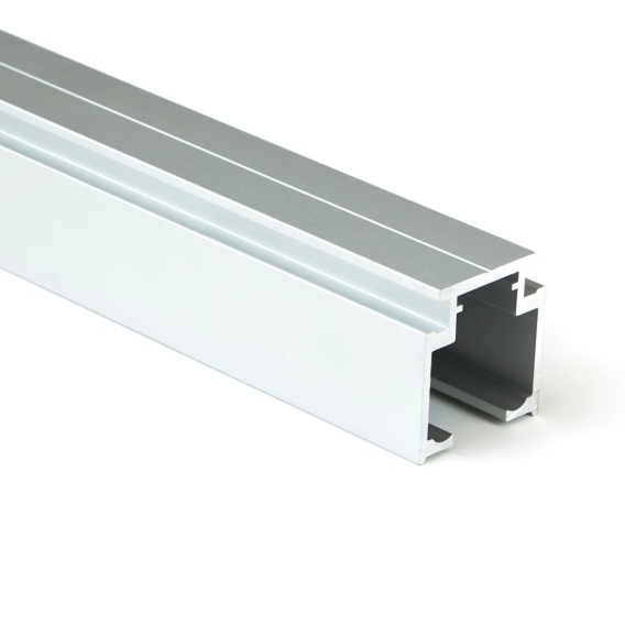 Szyna górna Railway 3.9m do drzwi przesuwanych to produkt, który jest kompatybilny z innymi akcesoriami Railway. Szynę można zamontować do sufitu, a dokupując dodatkowe uchwyty także do ściany. Kształt prowadnicy sprawia, że połączenie jej z mechanizmem wózków jest bardzo proste i pozostaje stabilne. Wymiary szyny wynoszą 42,3 mm wysokości i 34,5 mm szerokości, a długość wynosi 3.9 m. Szyna jest wykonana anodowanego aluminium, co gwarantuje trwałość i odporność na korozję.