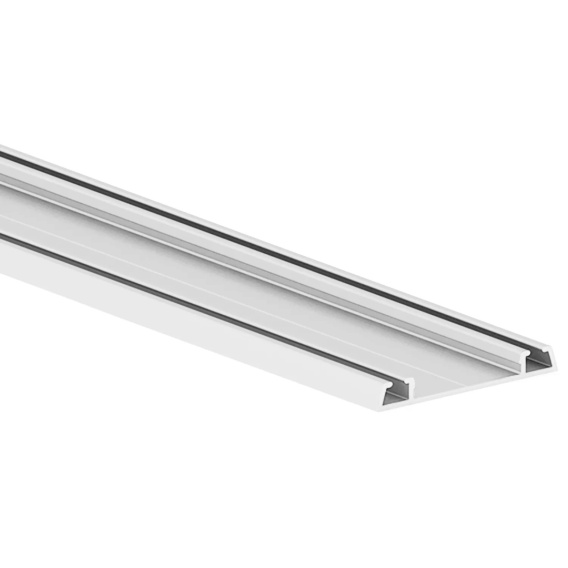 Tor dolny jezdny do drzwi przesuwnych Placard 74 Biały 2.35m przeznaczony jest do drzwi o maksymalnym ciężarze 70 kg. Szyna montowana jest wewnątrz modułu szafy, a drzwi przesuwają się po jej torach. Można w niej zamontować drzwi o grubości 10, 16, 18 i 19 mm.