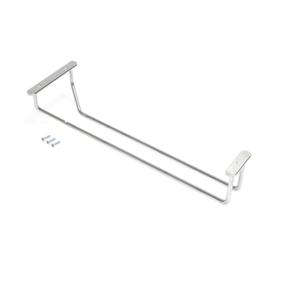 Praktyczny uchwyt na kieliszki umożliwiający lepszą organizację przestrzeni w kuchni poprzez zwolnienie przestrzeni w meblach. Dzięki temu uchwytowi na kieliszki możesz uporządkować przybory kuchenne i zawsze mieć je pod ręką. Złożony jest jednej linii o długości 340 mm z możliwością instalacji wewnątrz mebla, poniżej półki lub też na wyspach kuchennych oraz ladach w barach i restauracjach.