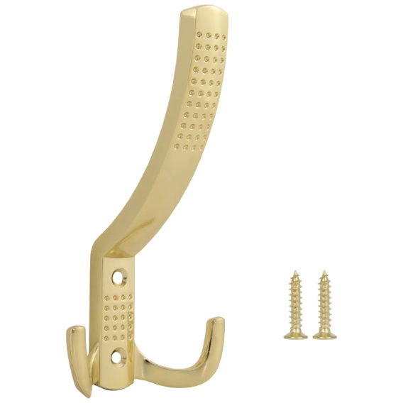 Świetnie zaprojektowany wieszak meblowy wysoki to propozycja dla fanów praktycznych rozwiązań. Do dyspozycji są trzy haki, a jeden z nich sporych rozmiarów. W ten sposób miejsca na odzież czy akcesoria nie braknie. Element wykończono w złotym kolorze, co podkreśla jego klasyczny charakter i elegancję. Producentem modelu jest firma LEBA.