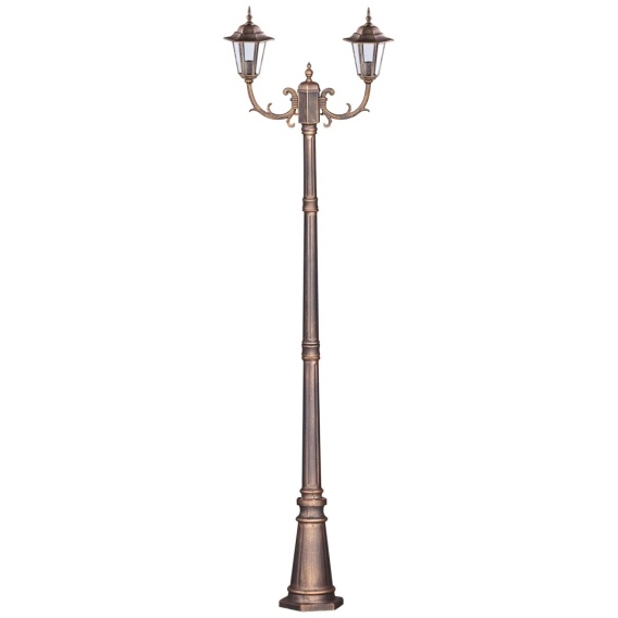 Wysoka zewnętrzna lampa stojąca K-7064A2/2 Czarna/Złota z serii STANDARD została wykonana z najwyższej jakości materiałów. Solidna metalowa konstrukcja zapewni trwałość produktu, a niepowtarzalny design sprawi, że idealnie wpasuje się w każdy ogród. Posiada możliwość wymiany źródła światła, dzięki czemu można indywidualnie dobrać jego moc i barwę. Model K-7064A2/2 posiada dwa źródła światła. Lampa pełni rolę nie tylko oświetleniową ale również dekoracyjną.