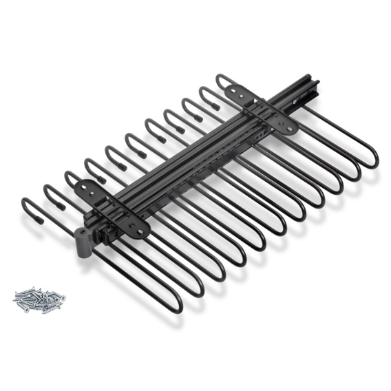 Funkcjonalny wieszak do szafy lub garderoby, idealny do przechowywania spodni w sposób uporządkowany i oszczędzający miejsce. Wyposażony w prowadnice kulkowe z pełnym wysuwem i nośnością do 10 kg, zapewnia płynne i ciche działanie.