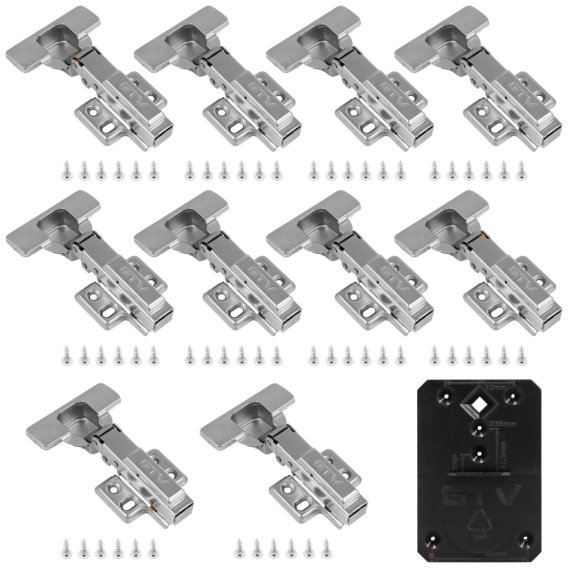 Zawias meblowy nakładany PRESTIGE z samodociągiem CLIP-ON GTV 10szt + Szablon