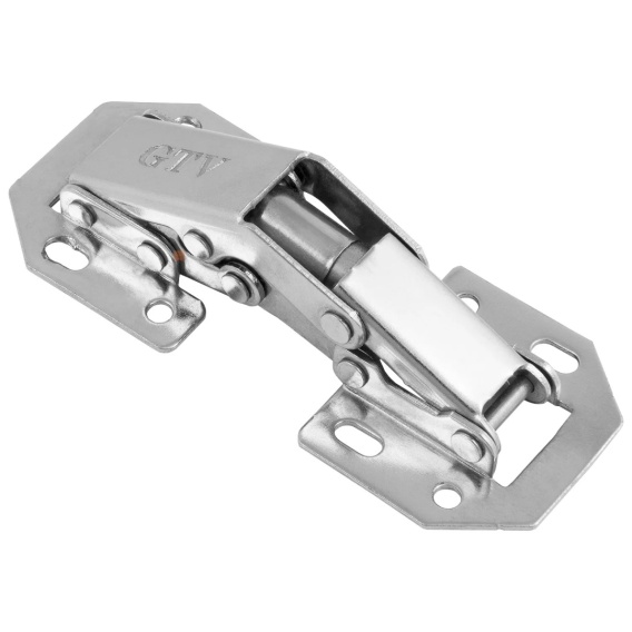 Zawias meblowy tłoczkowy GTV to idealne rozwiązanie do szafek w których nie ma możliwości nawiercania pod zawias puszkowy. Kąt otwarcia to 90 stopni.