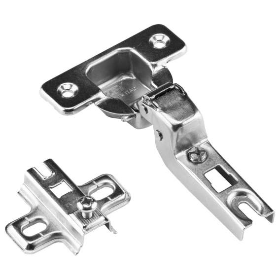 Zawias meblowy wpuszczany AGV PUSH bez sprężyny + Prowadnik H-2 stosuje się w szafkach w których otwarcie odbywa się poprzez lekkie naciśnięcie frontu. Zawias wpuszczany przeznaczony jest do drzwi położonych wewnątrz, pomiędzy ścianami bocznymi korpusu mebla. Ten typ zawiasu stosuje się najczęściej, aby uzyskać efekt zlicowania front z bokiem korpusu mebla. Zawias meblowy wpuszczany AGV PUSH bez sprężyny + Prowadnik H-2 bardzo solidnej produkcji, wykonany z wysokiej jakości stali.