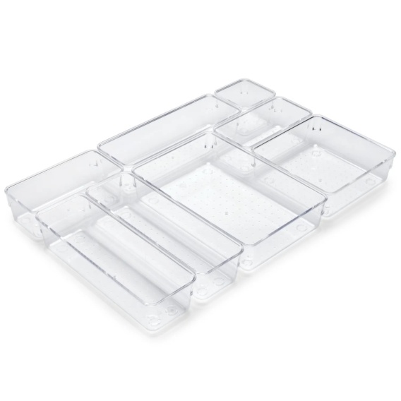 Zestaw 8 przezroczystych pojemników do szuflady organizer modułowy Cube