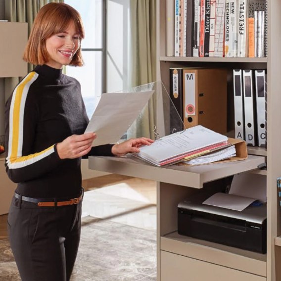 Szuflada tackowa Blum z blokadą wysuwu to stabilny i funkcjonalny system wysuwany, idealny do kuchni, łazienki, biura oraz pomieszczeń gospodarczych. Doskonale sprawdza się jako wysuwana półka pod ekspres do kawy, robot kuchenny lub inne AGD.