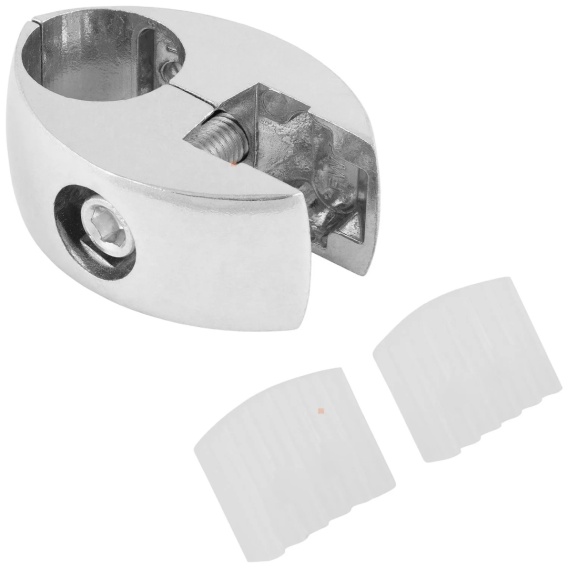 Złącze pojedyncze do płyty przeznaczone jest do zamocowania na rurze fi 25mm. Służy do połączenia rury ze szkłem. W zestawie dołączone są dwie wkładki PCV, które zapewniają solidne mocowanie szkła bez obawy o jego uszkodzenie.