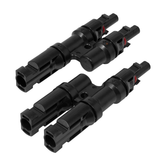 Złącze solarne konektor MC4 dwójnik równoległy IP67 przeznaczone jest do hermetycznego łączenia kabli solarnych. Stosowane są do łączenia paneli fotowoltaicznych. Są odporne na działanie promieniowania UV. Złącza są kompatybilne z przewodami PV o przekroju 2,5-4 mm². Stopień ochrony IP67 zapewnia odporność konektorów na trudne warunki atmosferyczne - gwarantuje pyłoodporność i ochronę przed skutkami krótkotrwałego zanurzenia w wodzie. Dzięki temu złącza gwarantują bezpieczne i stabilne połączenie.
